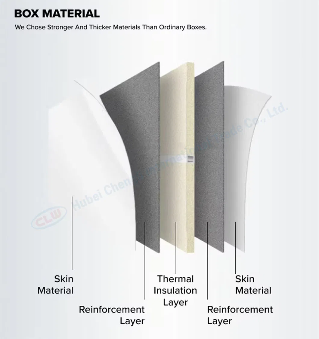 Yes, we can customize the box material, thickness (8cm/10cm), and add optional configurations like meat hook guide rails or aluminum floors based on your requirements.
